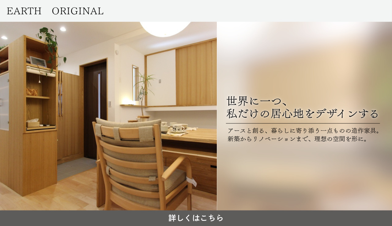 私たちアースが提供するのは、単なる“家”ではなく、コンパクトな空間に広がる豊かな暮らし。限られた敷地や条件の中でも、間取りや性能はもちろん、家具・家電・カーテン・収納・植栽に至るまでトータルにデザインします。空間の使い方を最適化し、感性に寄り添った暮らしを実現します。住まいのすべてを丁寧に編み上げることで、「狭さ」ではなく「豊かさ」を感じる毎日へ。コンパクトだからこそ叶う、心地よい暮らしを貴方に。