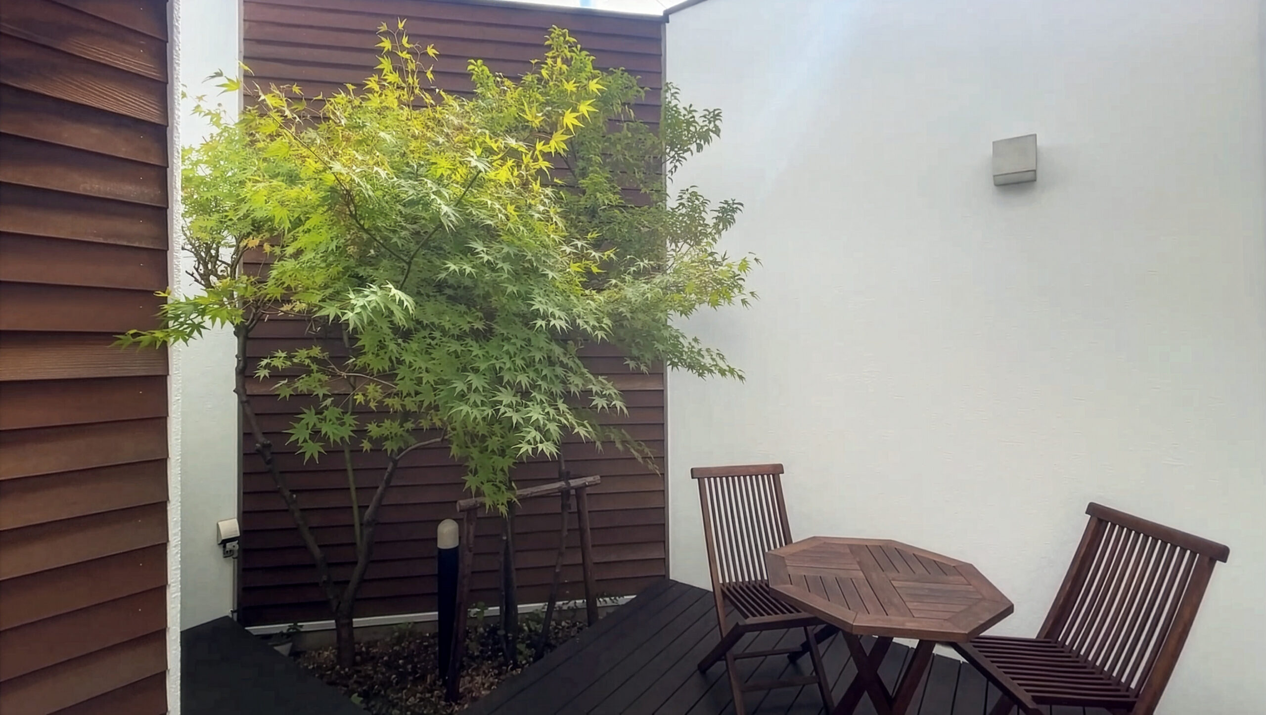 最も大きな変化を見せたのが「中庭の植栽」たちです。 植えた当初は控えめだったモミジやソヨゴも、今では2階の窓に届くほど立派に成長しました。 リビングにいながらにして四季の移ろいを感じ、木漏れ日が室内を優しく彩る——。家と庭が共に成長し、暮らしの景色そのものが豊かになっています。
