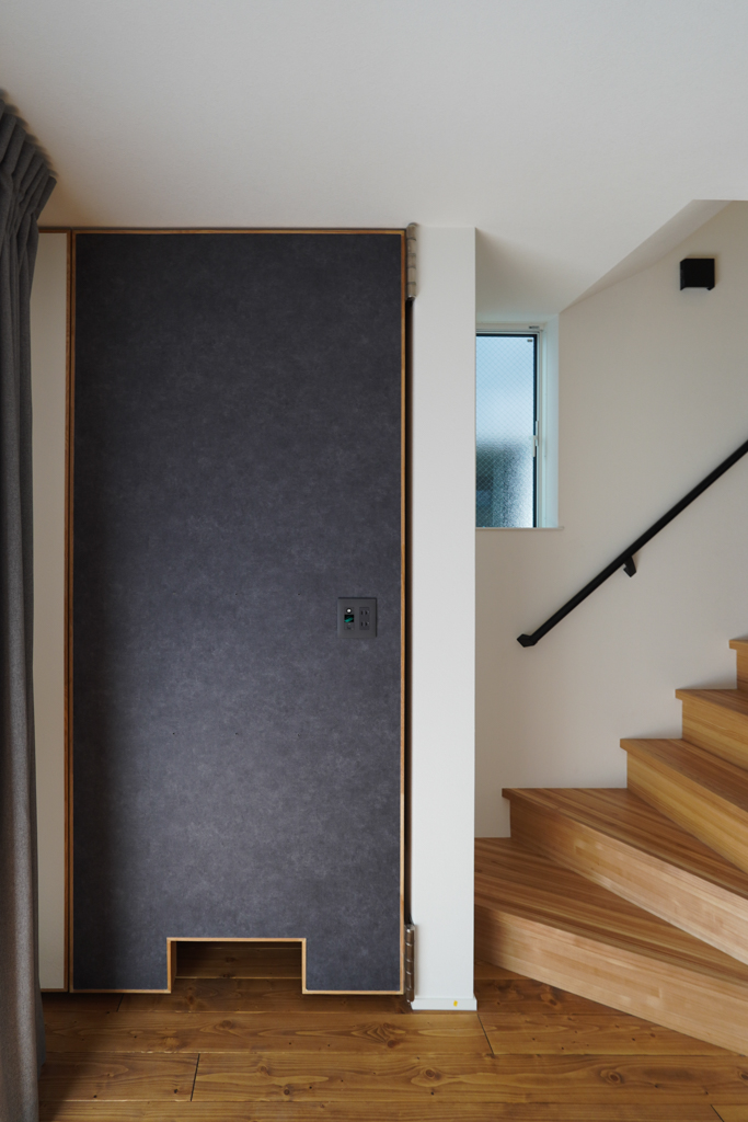 背面を収納にした可動式の壁。生活感を隠しつつ、配線もスッキリさせるアイデアに驚きの声が上がりました。