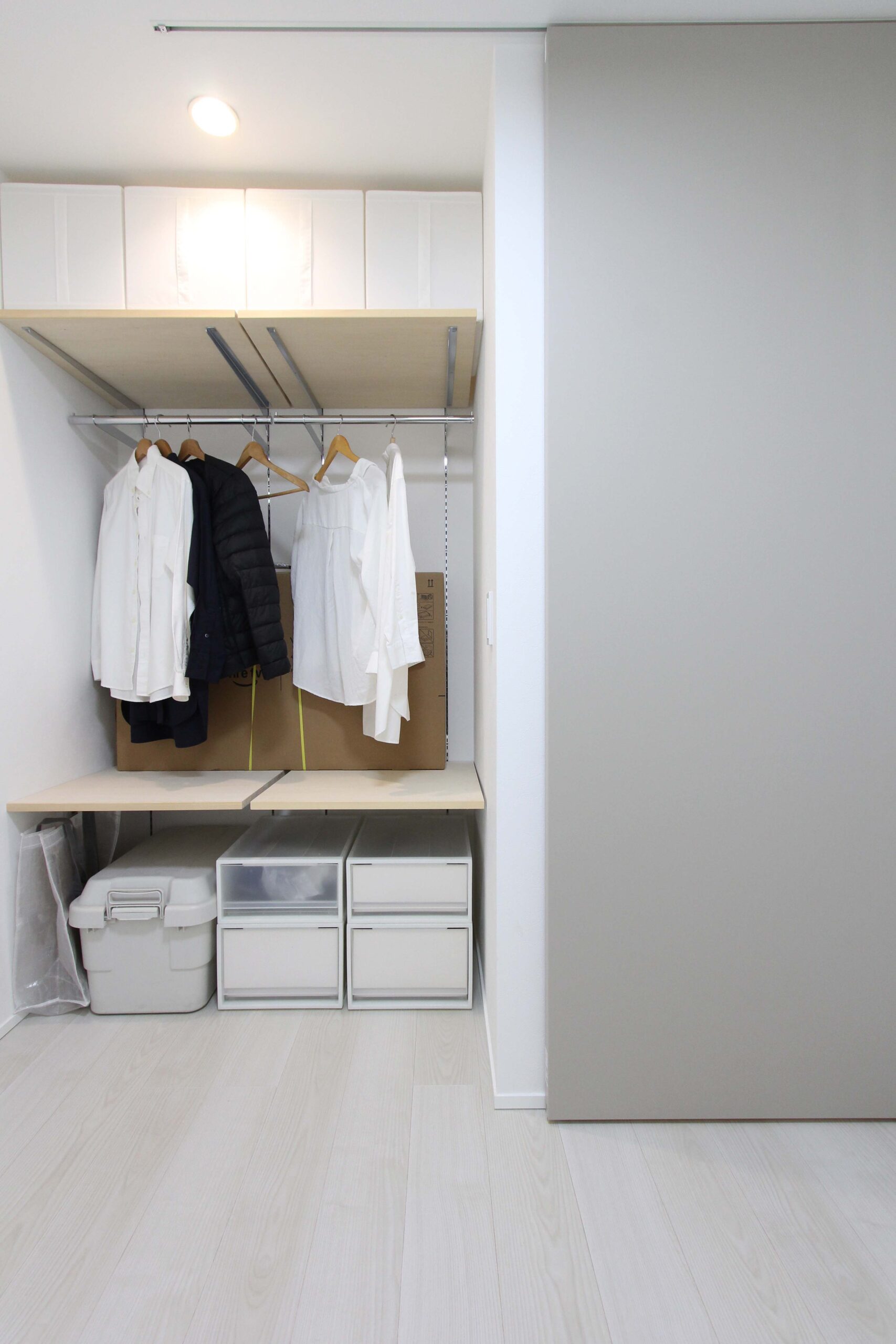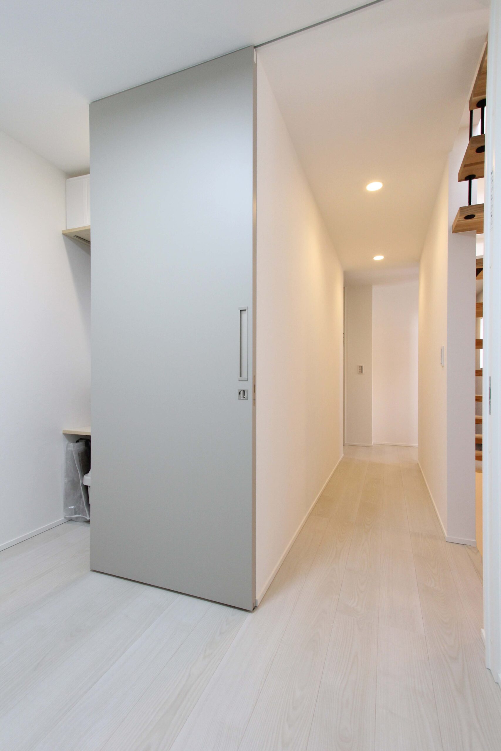 一見するとシンプルな子供部屋ですが、実は扉の裏側にデッドスペースを活かした収納を設けています。お部屋の広さはそのままに、わずかな隙間も無駄にしない工夫です。コンパクトな空間でも、お片付けがしやすく、すっきりと暮らせるよう配慮しました。